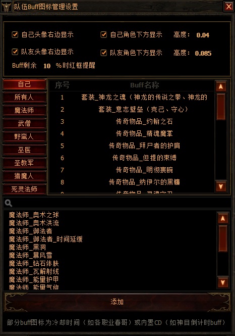 自己 列表代表添加的所有Buff都只会为自己显示,不管自己是什么职业