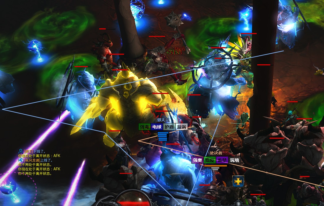 该插件会将精英按组划分连线,并且在其中显示该组精英的名字、词缀以及所有组员的血量,该功能通常不推荐使用