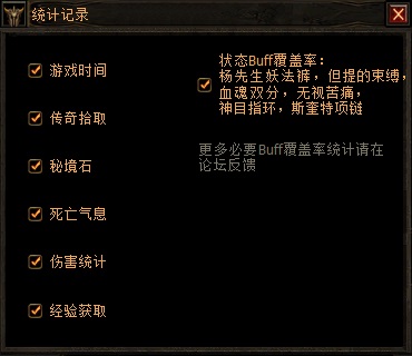 BUFF覆盖率:目前支持杨先生的妖法库、但提的束缚、血魂双分、无视苦痛、神目指环的覆盖率,本功能将根据实际需要逐步添加
